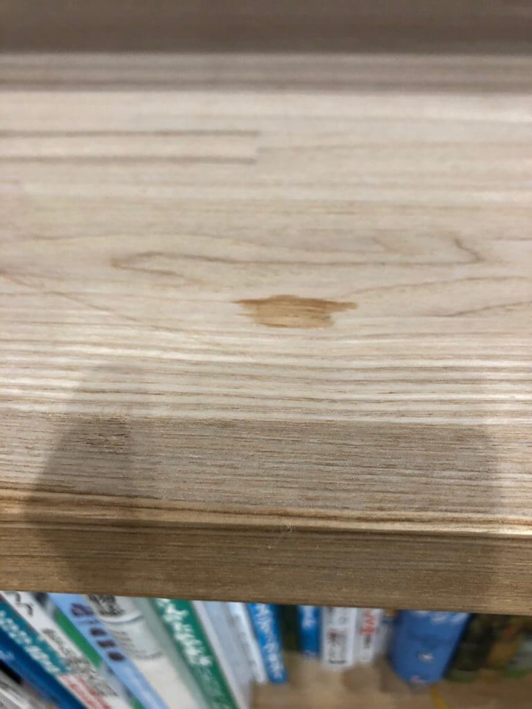 このまま放置すると、シミになります。人間も木材も素肌は弱いんですね・・・