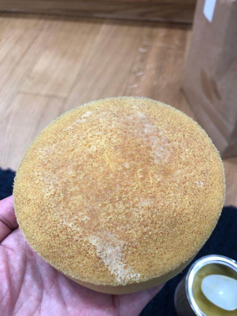 スプーンですくったものを、スポンジにつけて伸ばしてみました。