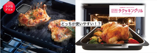 名前もそっくり、トレー付きのグリルでお掃除が楽というPRも同じ。。。どっちでも同じじゃん!と思われがちですが、細かく見ていくと各社特徴があり、はっきりと違いがあります。
