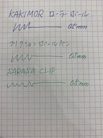 ちなみに、ペンの太さ比較で、家にあったフリクションとサラサの同じ0.5mmのボールペンと比較してみました。すこ〜し、ローラーボールが太い気がしないでもないですが、ほぼほぼ、同じですので割と細い線にも対応できます!!